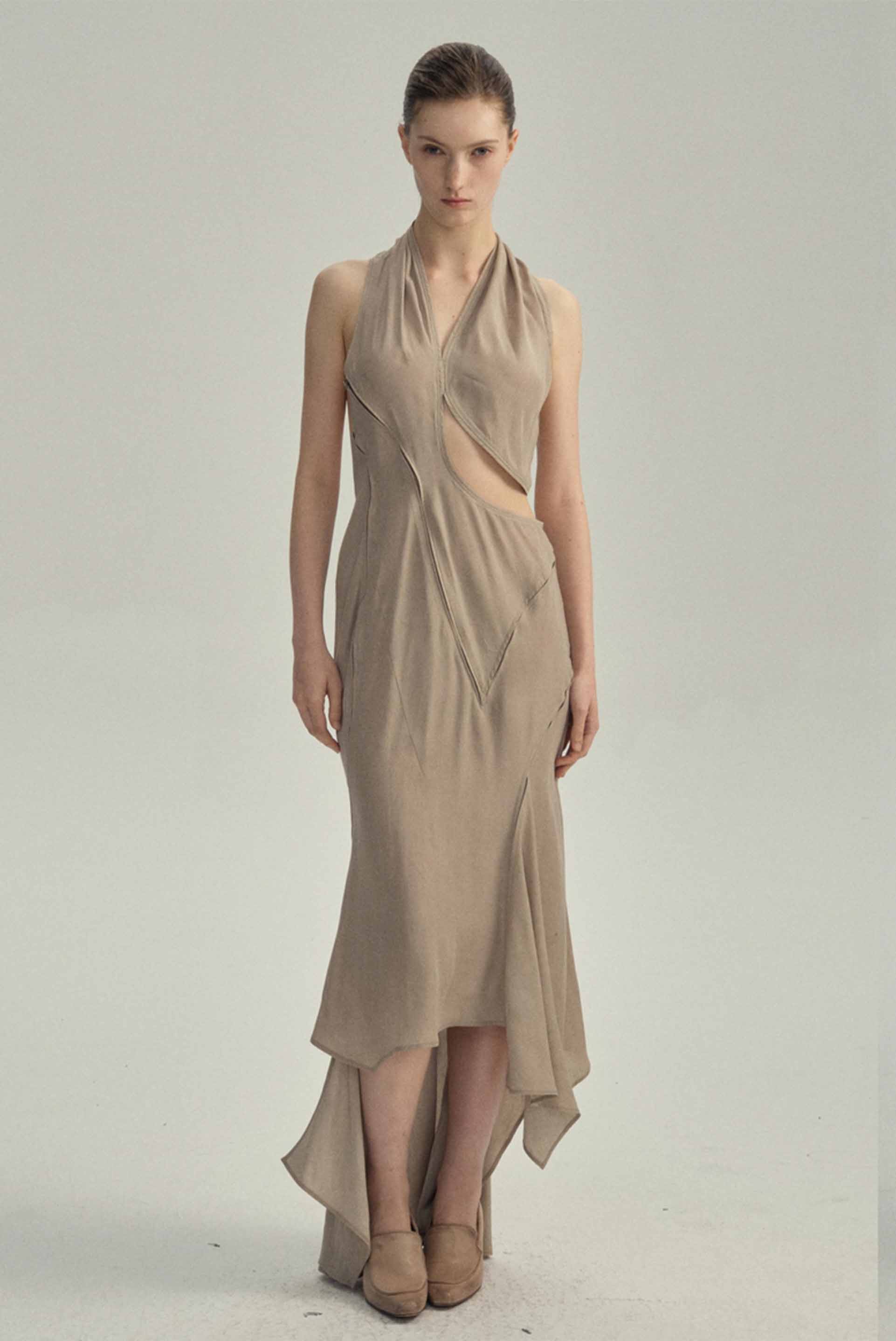 Yehuafan explores the quiet beauty of material and form. Each piece is crafted with a focus on texture, proportion, and the natural character of the fabric, resulting in a raw and refined look. Designed to age gracefully, Yehuafan carry the marks of time and use, becoming more personal with every wear. Yehuafan believes in feminine beauty with his own way to explain the smooth curve to compliment women’s body. He specialised in asymmetrical cutting and deconstructed silhouette as seen with the Walnut Silk Dress.
