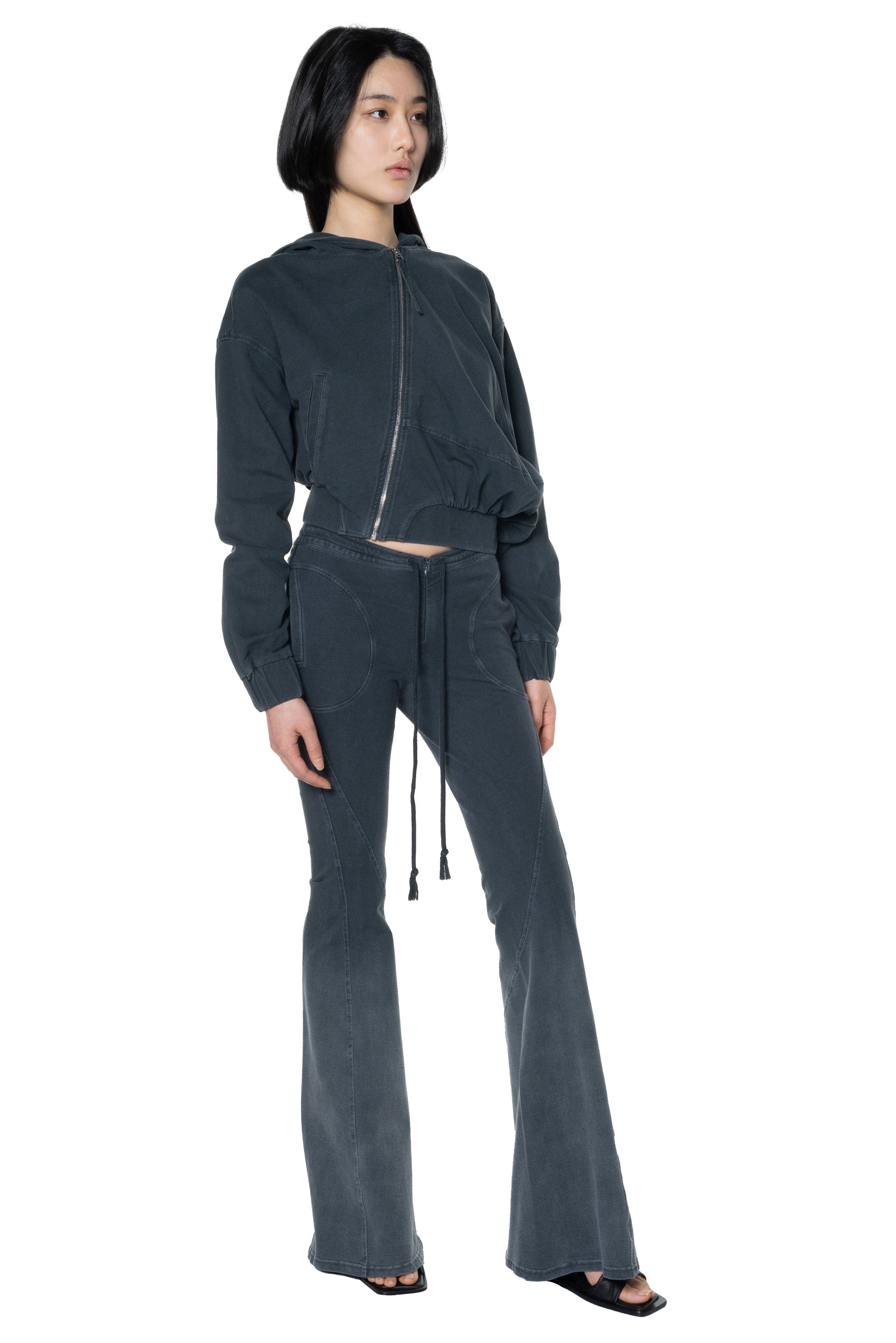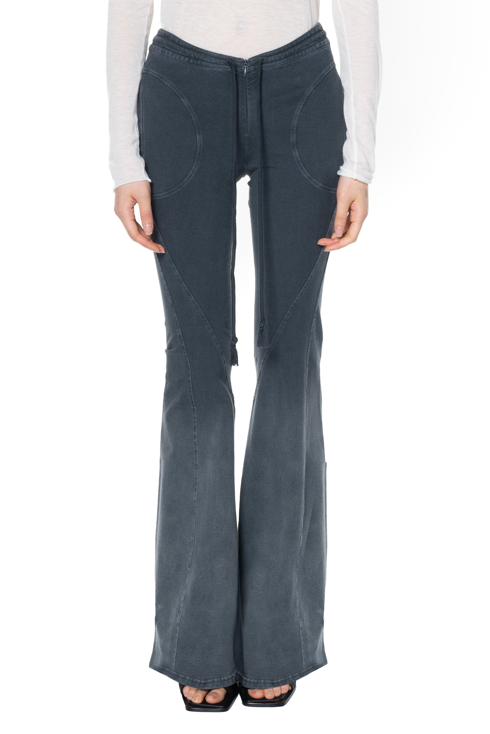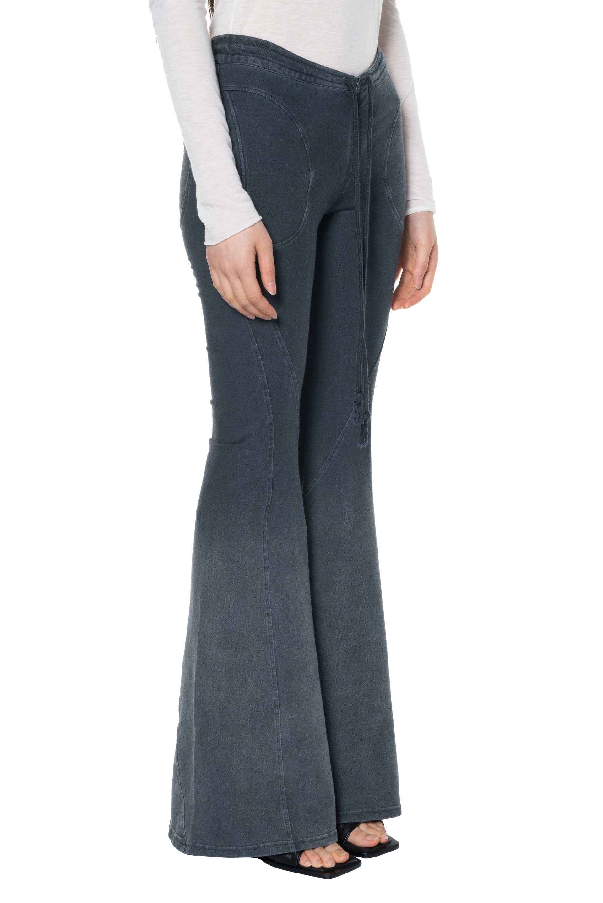 OUDE WAAG strikes a balance between Asian aesthetics and Western cutting. It is at the heart of designer’s philosophy: celebrating the power of women, yet simultaneously critiquing the ongoing objectification and idealisation of the body as you can see with the Washed Flared jersey Trousers Grey.