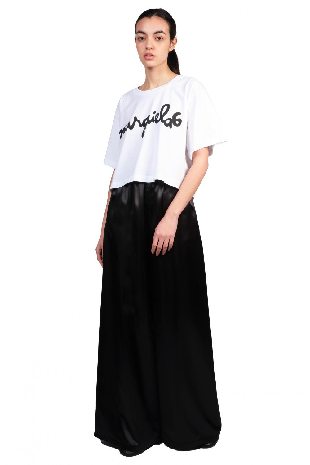 MM6 is known for its sporty ready-to-wear and off-beat accessories, more casual, street-inspired take on the Maison's intellectual approach to luxury as seen in the MM6 White Logo Cropped T-Shirt.