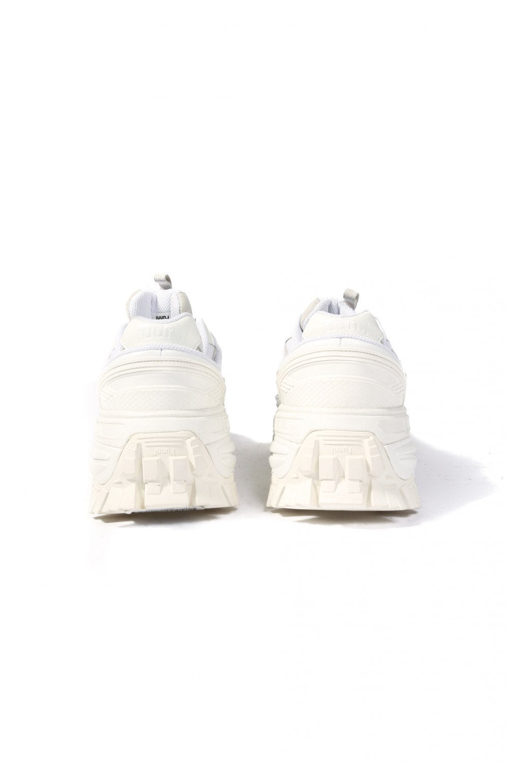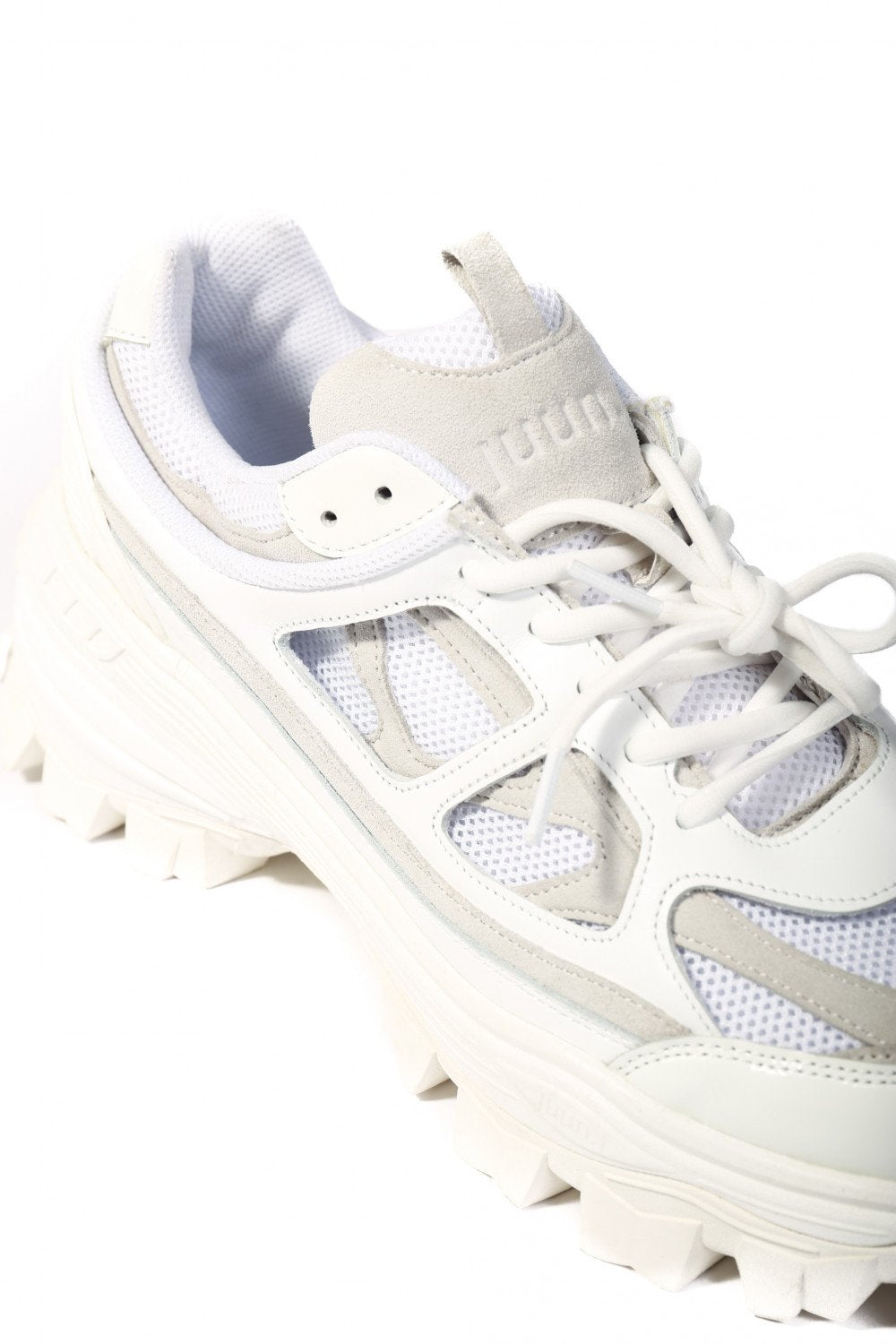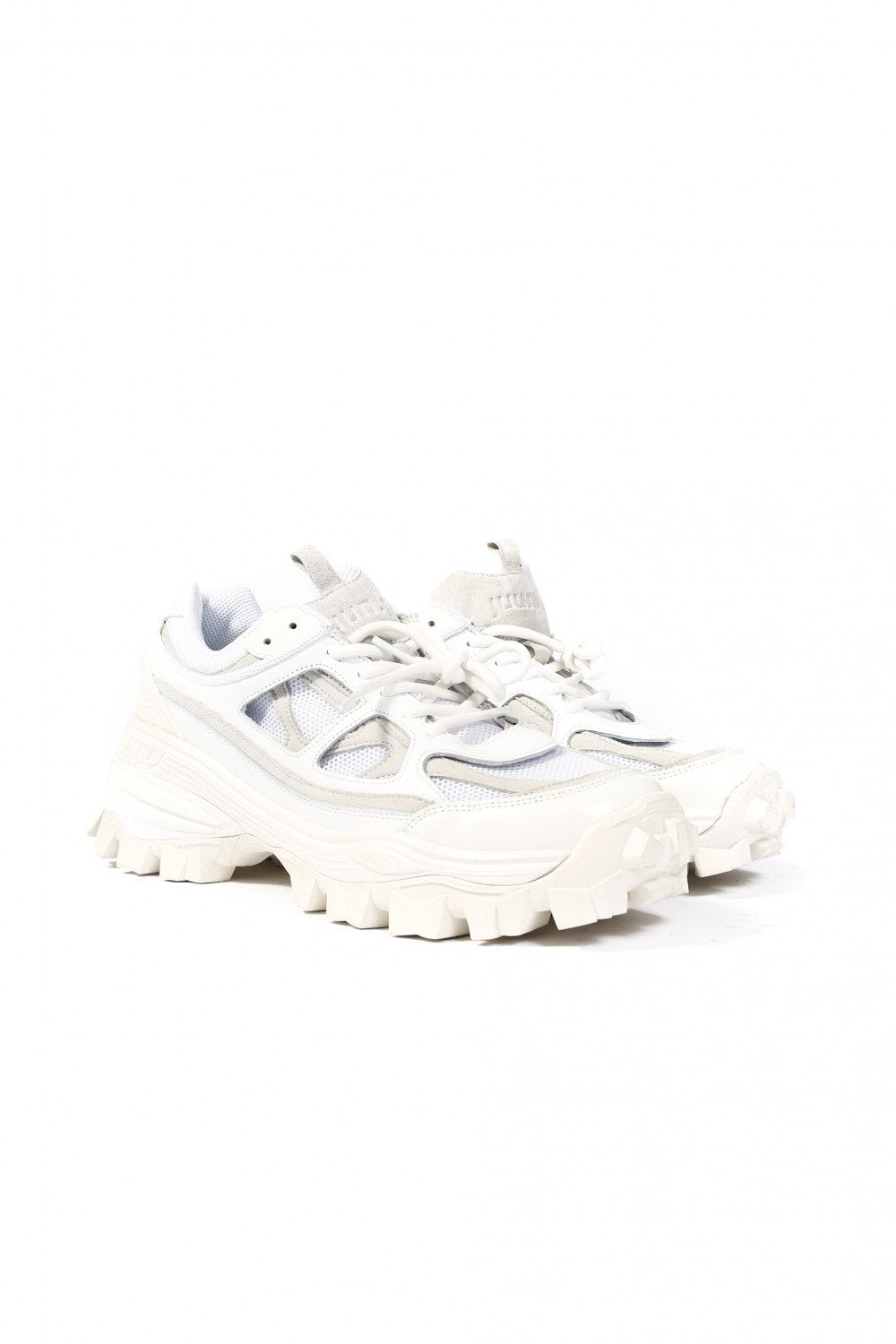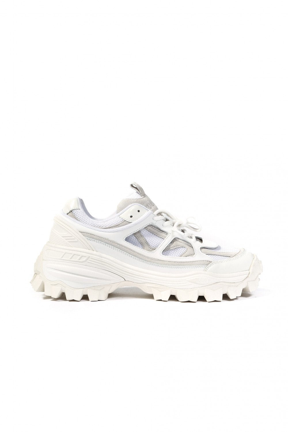 The theme of Juun. J’s SS 19 collection is “Alternative” and featured designs and silhouettes inspired by ’90s sportswear. The collection plays with fabric layering, embroidery and printing as seen in the White Volume 3 Sneakers.