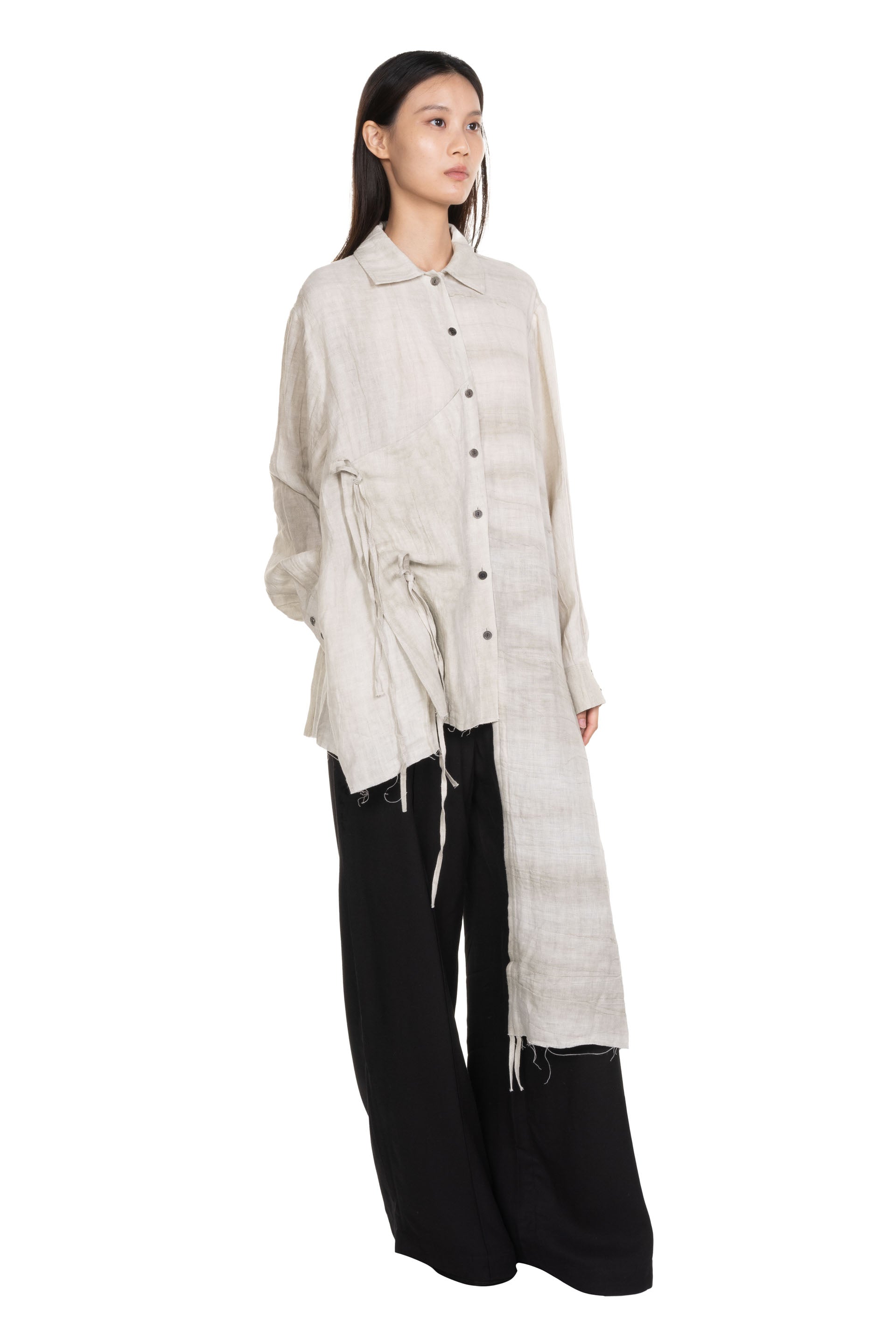 Professor. E understands the time of aesthetics from the use of cotton, hemp and wool. Fabric stitching, patching, designs without edge trimming, deconstruction, and reproduction are all Professor. E's signature elements creating classic immortal designs that can be viewed with the Wide Pants Black.