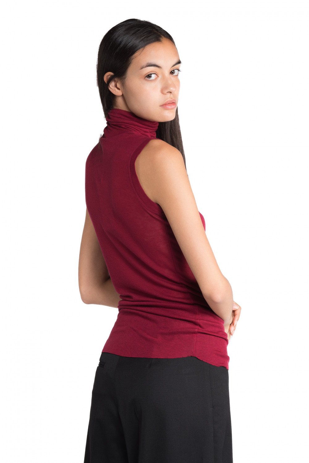 Greyyang Wine Sleeveless Turtle Neck
