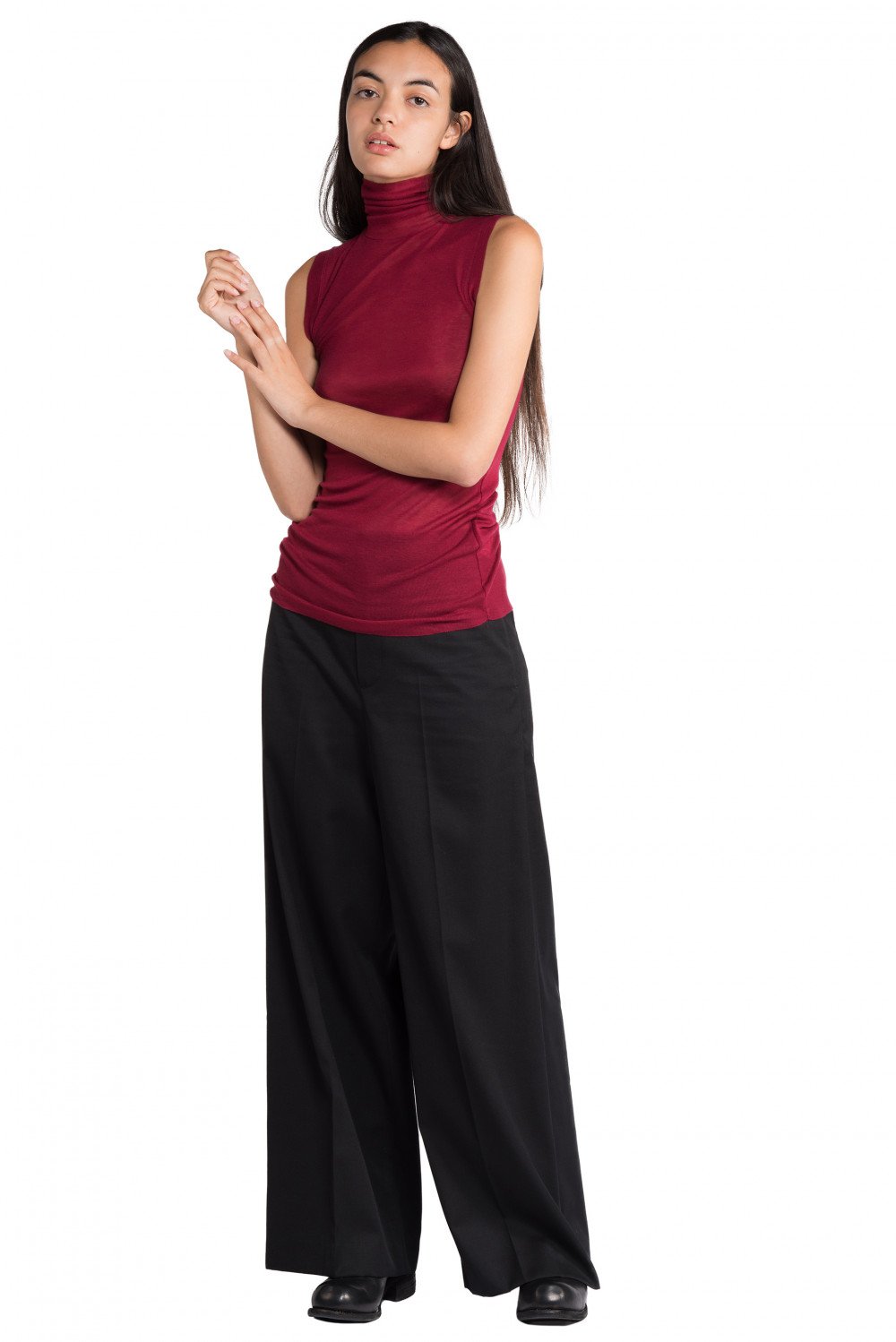 Wine Sleeveless Turtle Neck