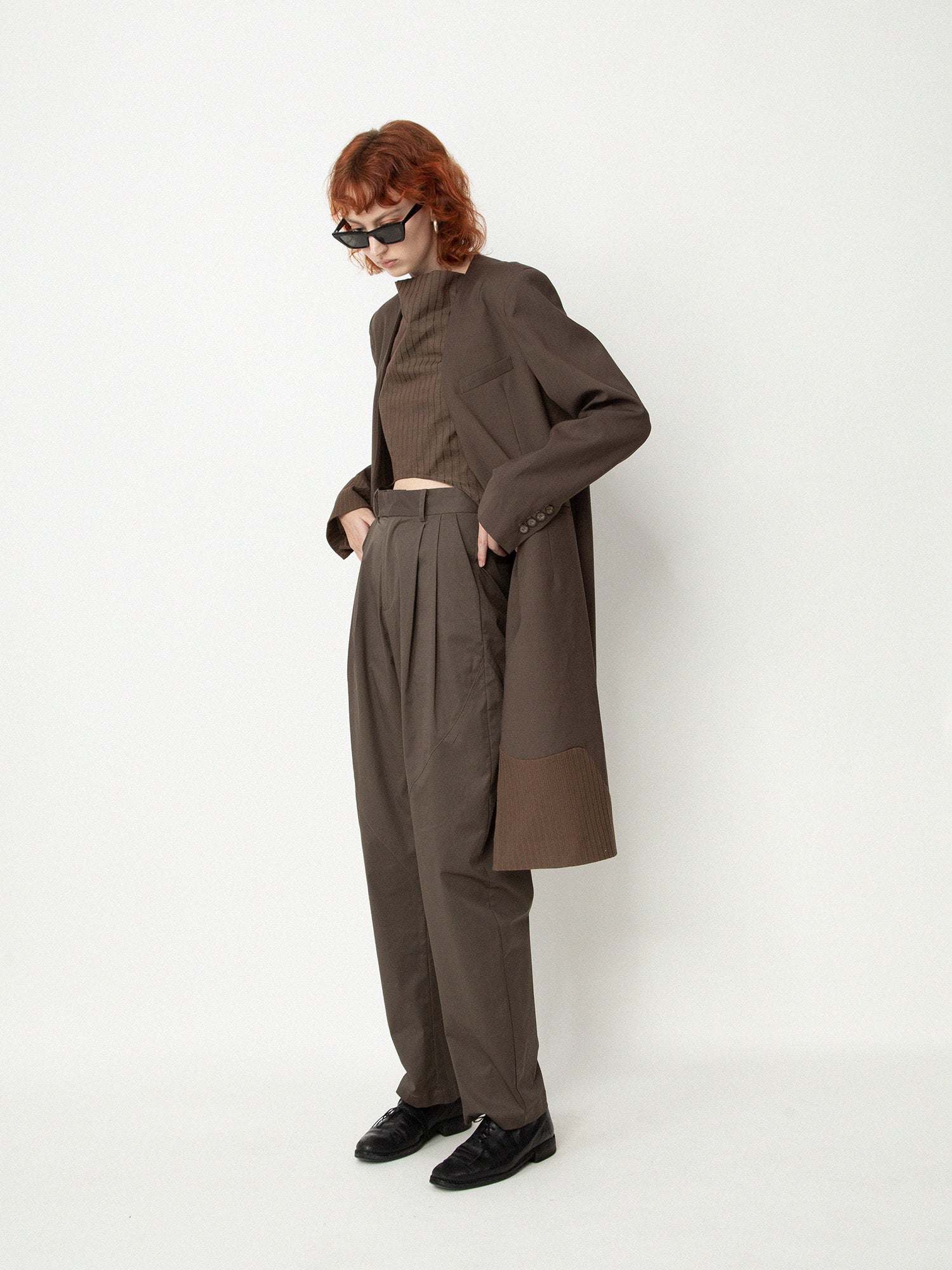 ii delivers a sense of originality, simplicity, spontaneity and a hint of childlike innocence pushing boundaries among ages to present qualitative collections with timeless touches designed for independent individuals as seen with the Wood-Irregular Wide Trousers from ii sense.