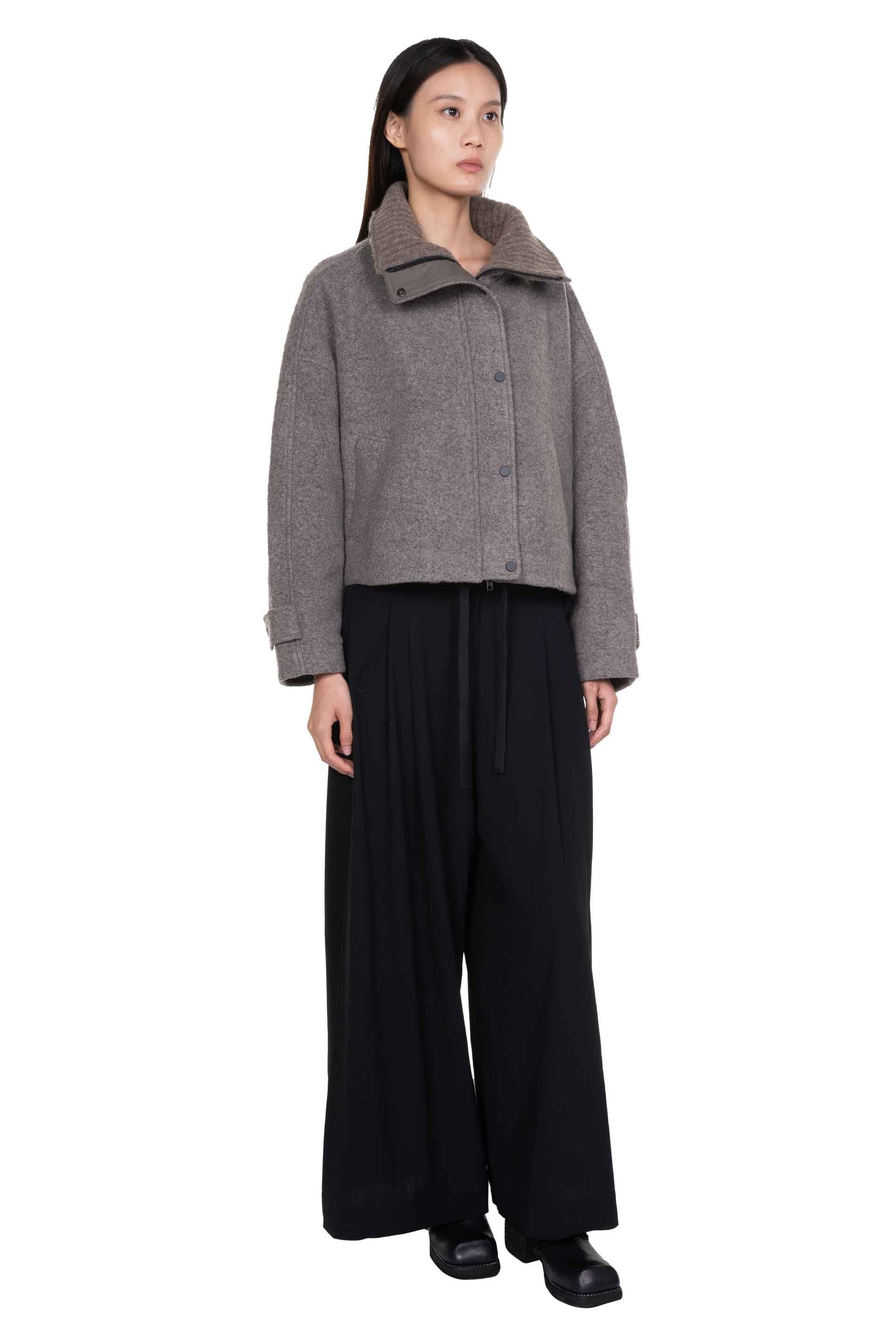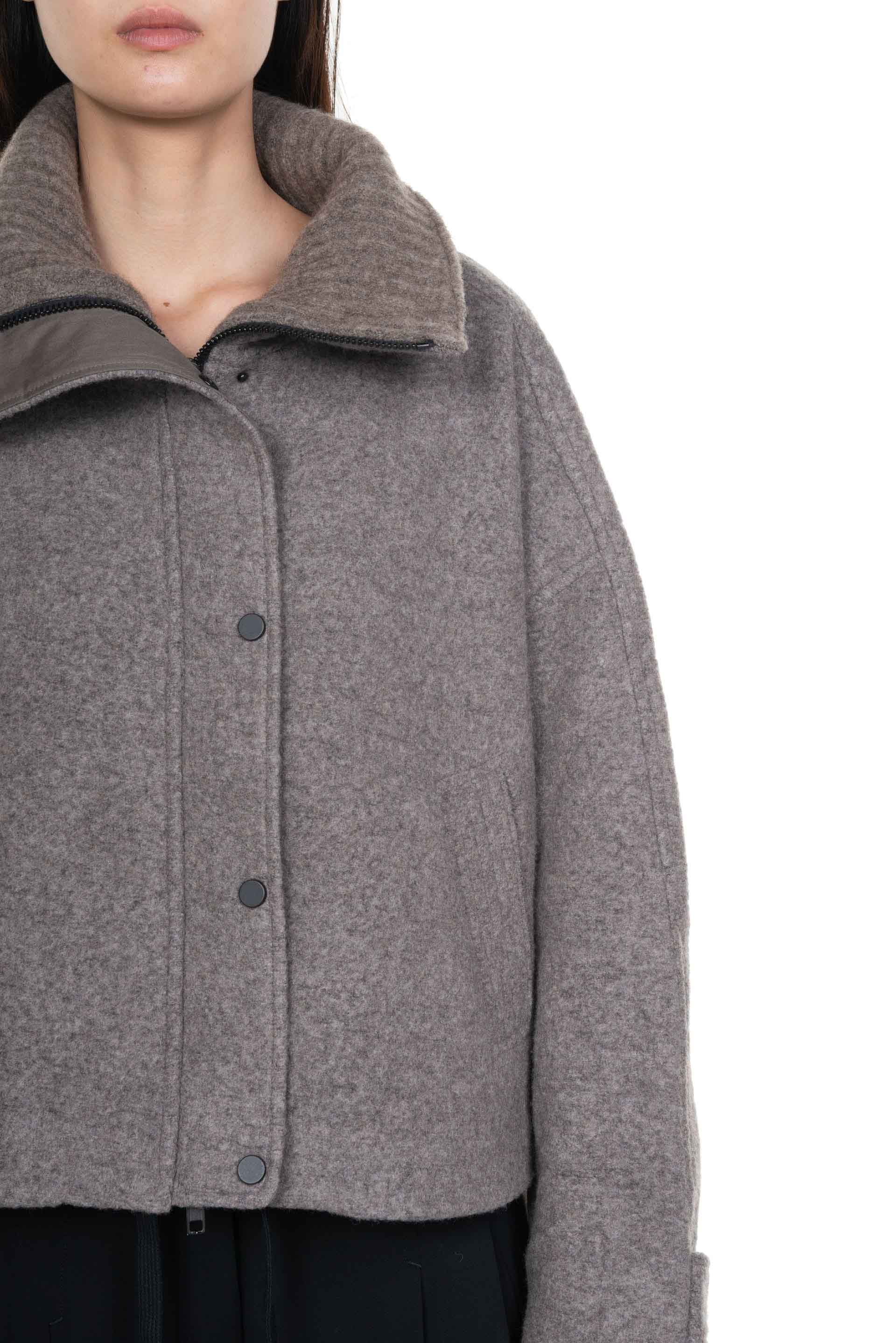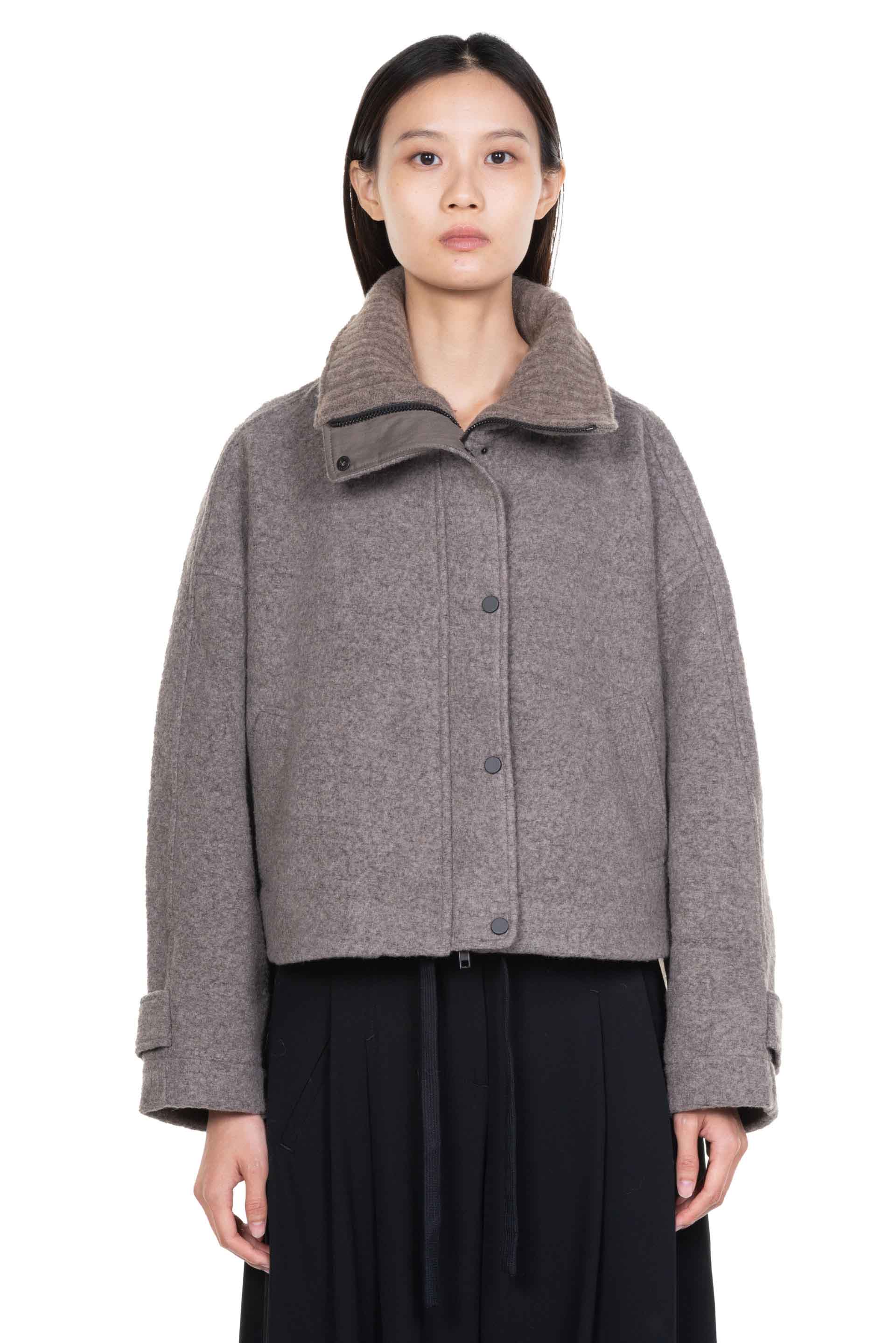 Isabel Benenato Cropped Jacket. Long sleeves. Zip closure at front. High Neck. Boxy fit. Cropped. Soft and light fabric. Two side pockets.