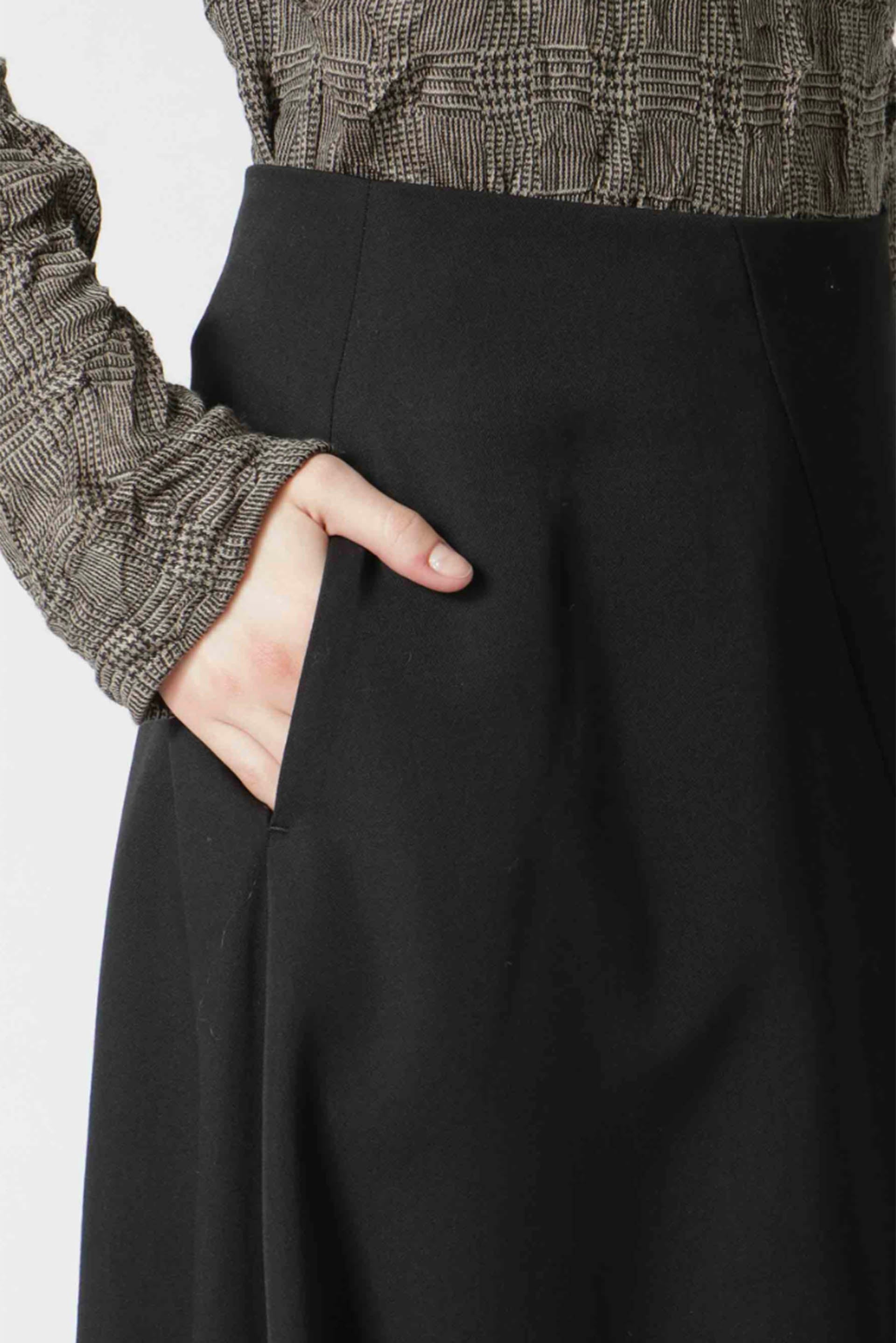Asymmetric skirt made of Y’s signature wool gabardine. Slightly wrinkled and crinkled during the finishing process to give it the original texture of wool. The length of the left and right asymmetric sides are different. Beautiful drape at the hem.