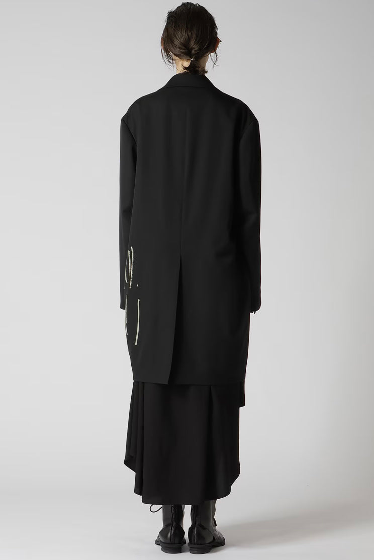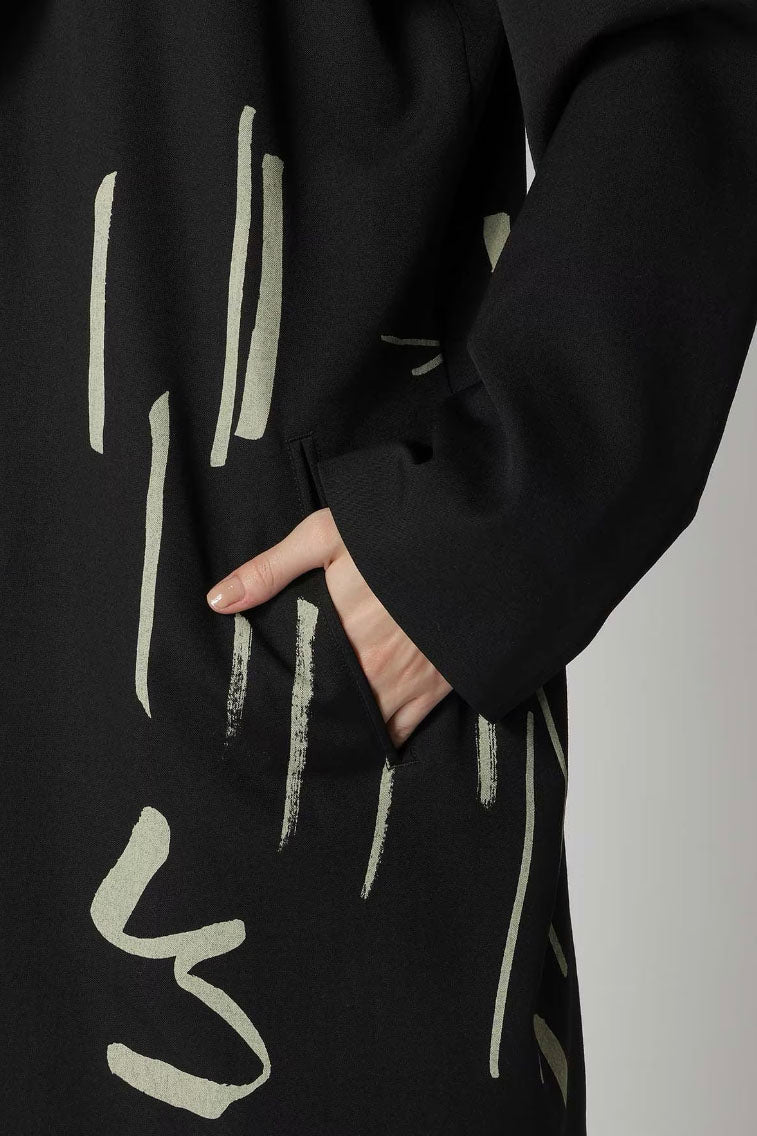 Wool Gabardine Test-Drawing Printed Open Collar Jacket