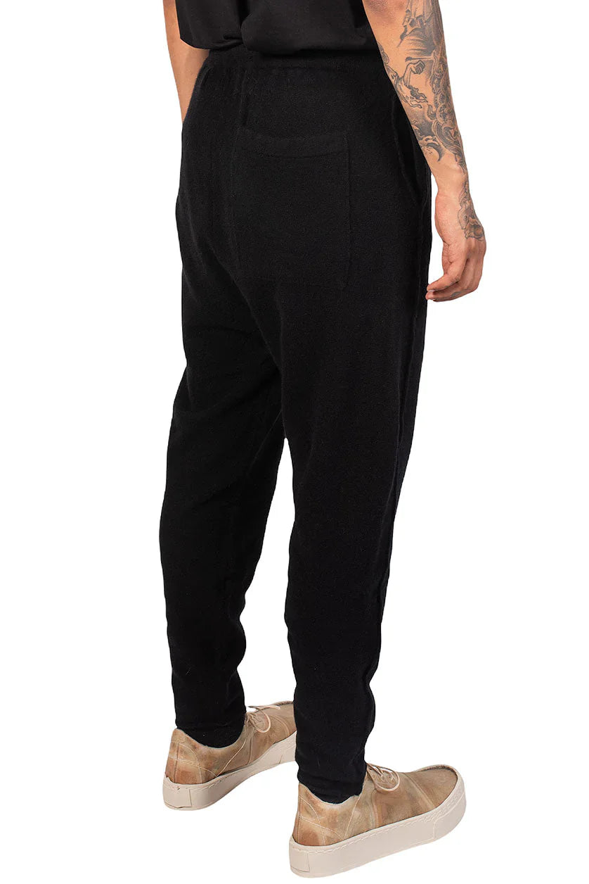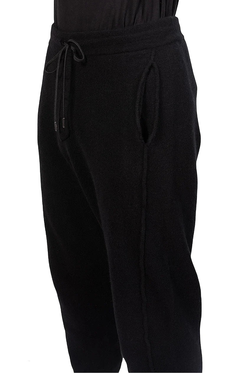Isabel Benenato Wool Knitted Pants. Drawstring straight-leg trousers. Black merino wool-yak blend. Straight-leg trousers. Rear pocket.
