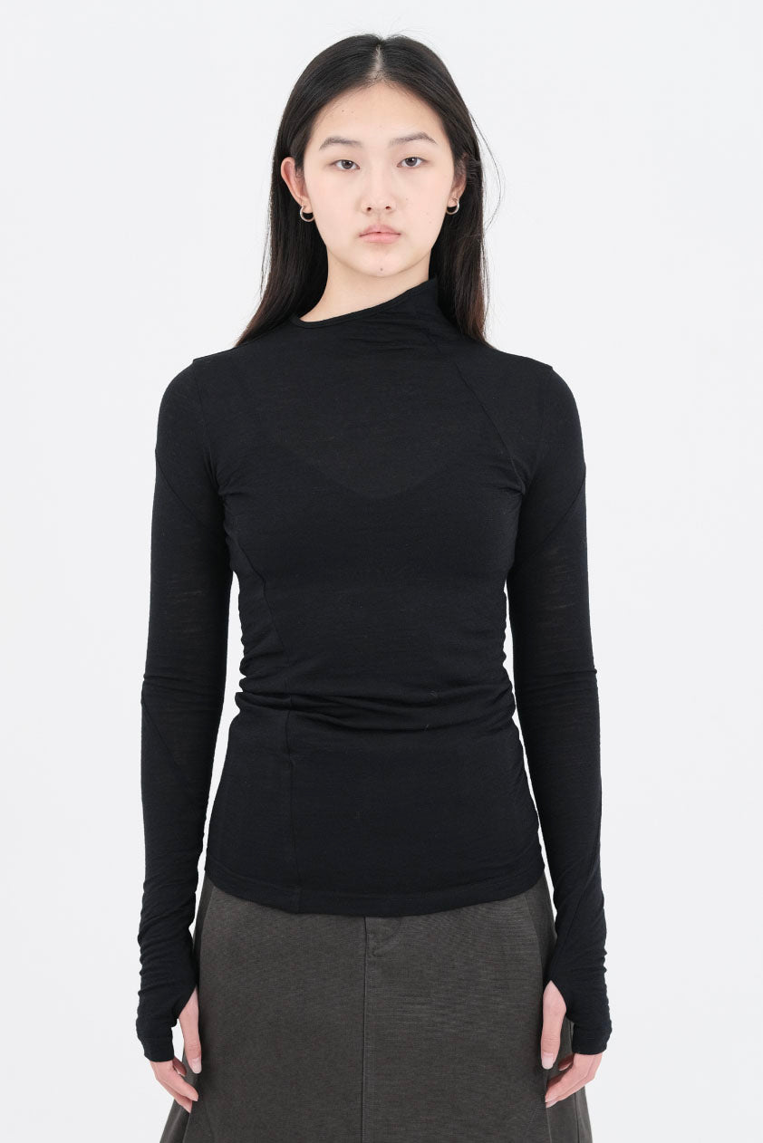 Attempt Long sleeves t-shirt in Black. Long sleeves with thumbhole details at cuffs. Curved details throughout.