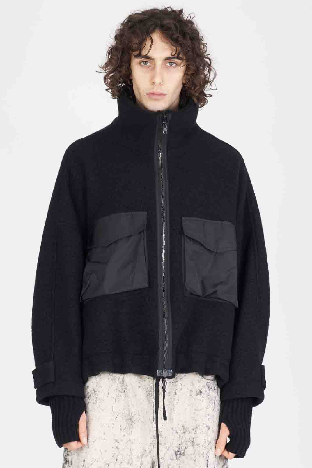 Isabel Benenato Cropped Jacket. Long sleeves. Double zip closure at front. High Neck. Boxy fit. Cropped. Soft and light fabric. Two front Nylon pockets.