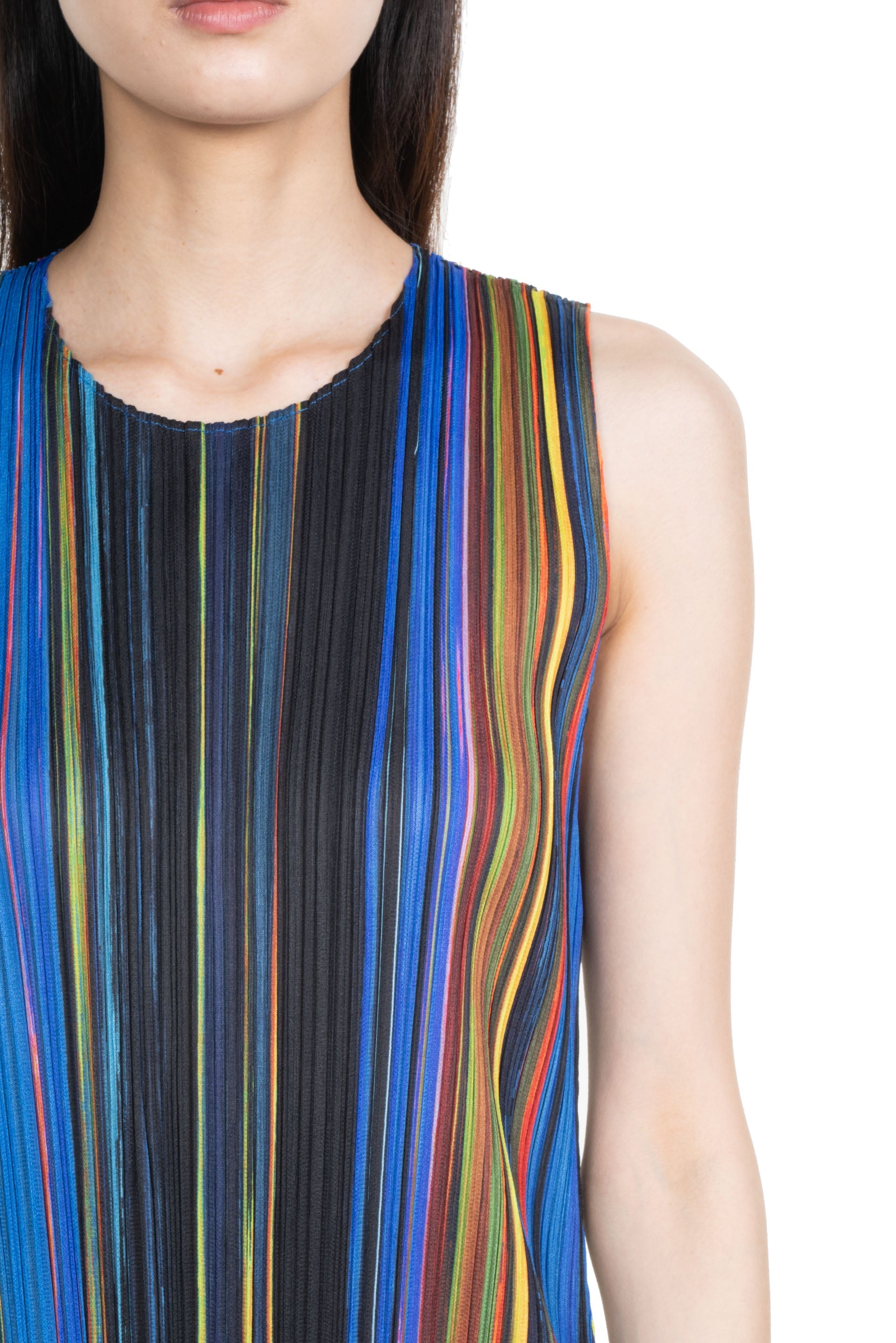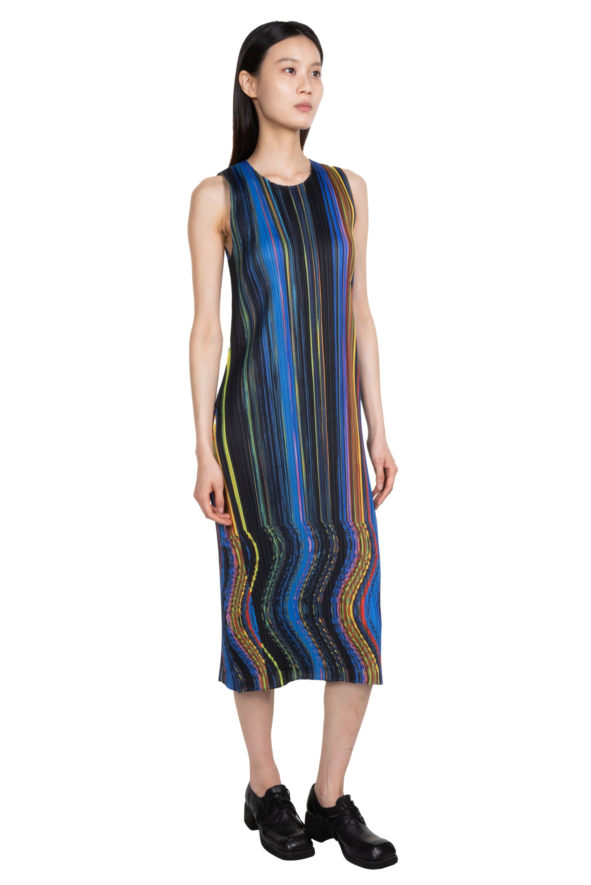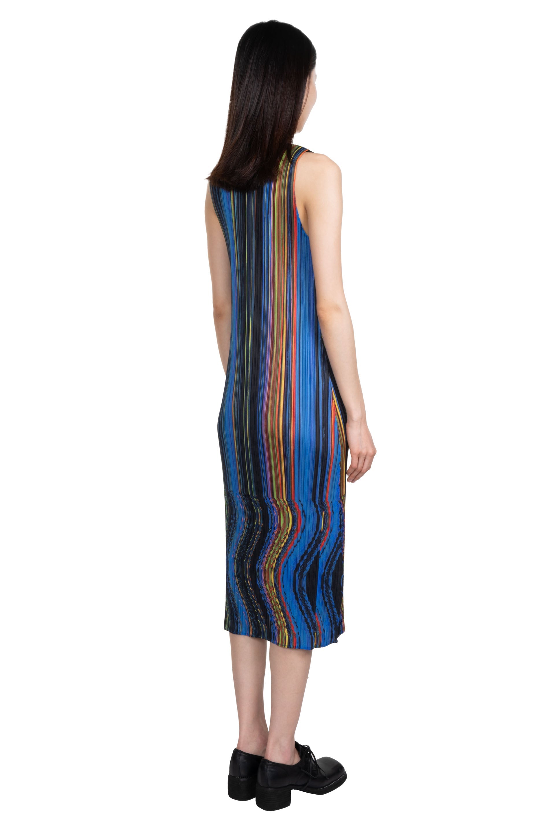 Pleats Please is crafted from a single thread, then creases are added after the clothes have been sewn into shape offering a combination of convenience, comfort and coolness. Pleats Please designs are simple with a strong silhouette as seen with the Wrap Dress Black.