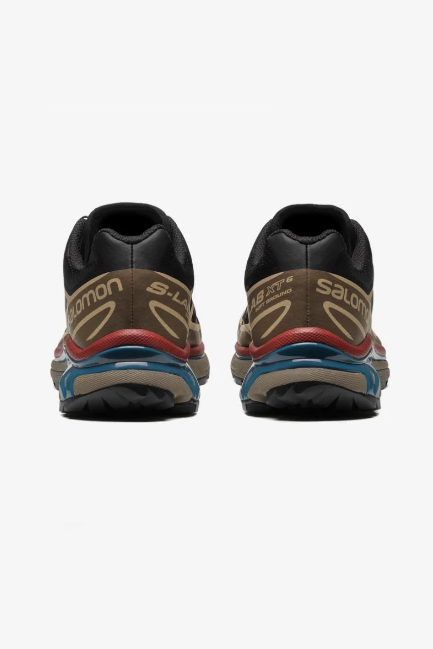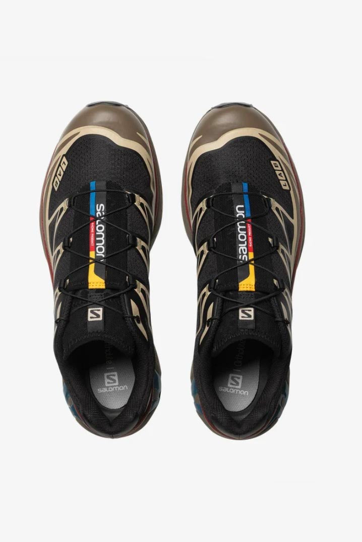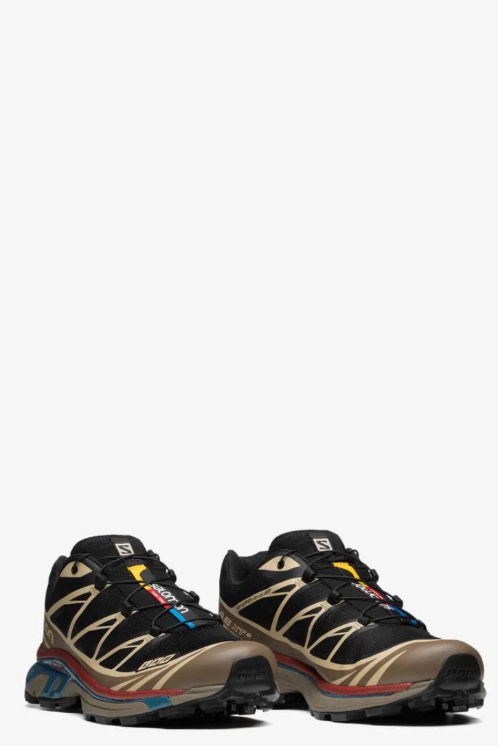 Salomon shoes seamlessly combine sports shoe technologies with modern city style. Performance-inspired design with style from the heart of the city. As well as appealing to outdoor adventurers, their hiking boots and runners are suited to make a bold fashion statement as the brand has delved into high-end fashion in recent years as seen with the XT-6 Black / Falcon / Cow Hide.