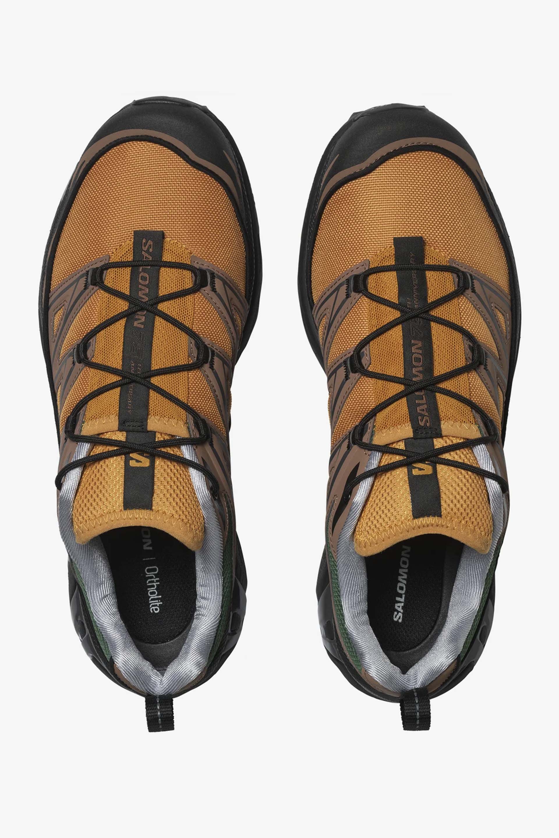 Salomon shoes seamlessly combine sports shoe technologies with modern city style. Performance-inspired design with style from the heart of the city. As well as appealing to outdoor adventurers, their hiking boots and runners are suited to make a bold fashion statement as the brand has delved into high-end fashion in recent years as seen with the XT-6 Expanse 75TH Golden Oak / Acorn / Black