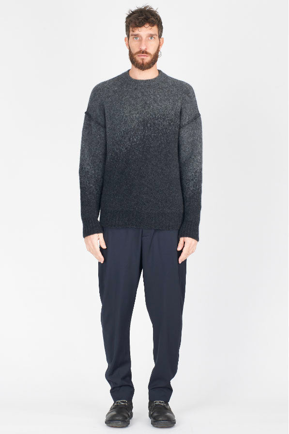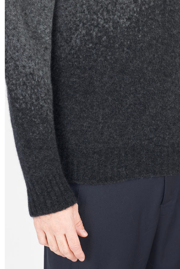 Isabel Benenato is committed to sustainability and makes every effort to minimise its environmental footprint. All of the collection are manufactured in Italy with the intention to save and support her local community. Her design is based on an imperfect perfection that encompasses the human being itself as seen with the Yak Crew Neck Jumper Degrade Graphite.