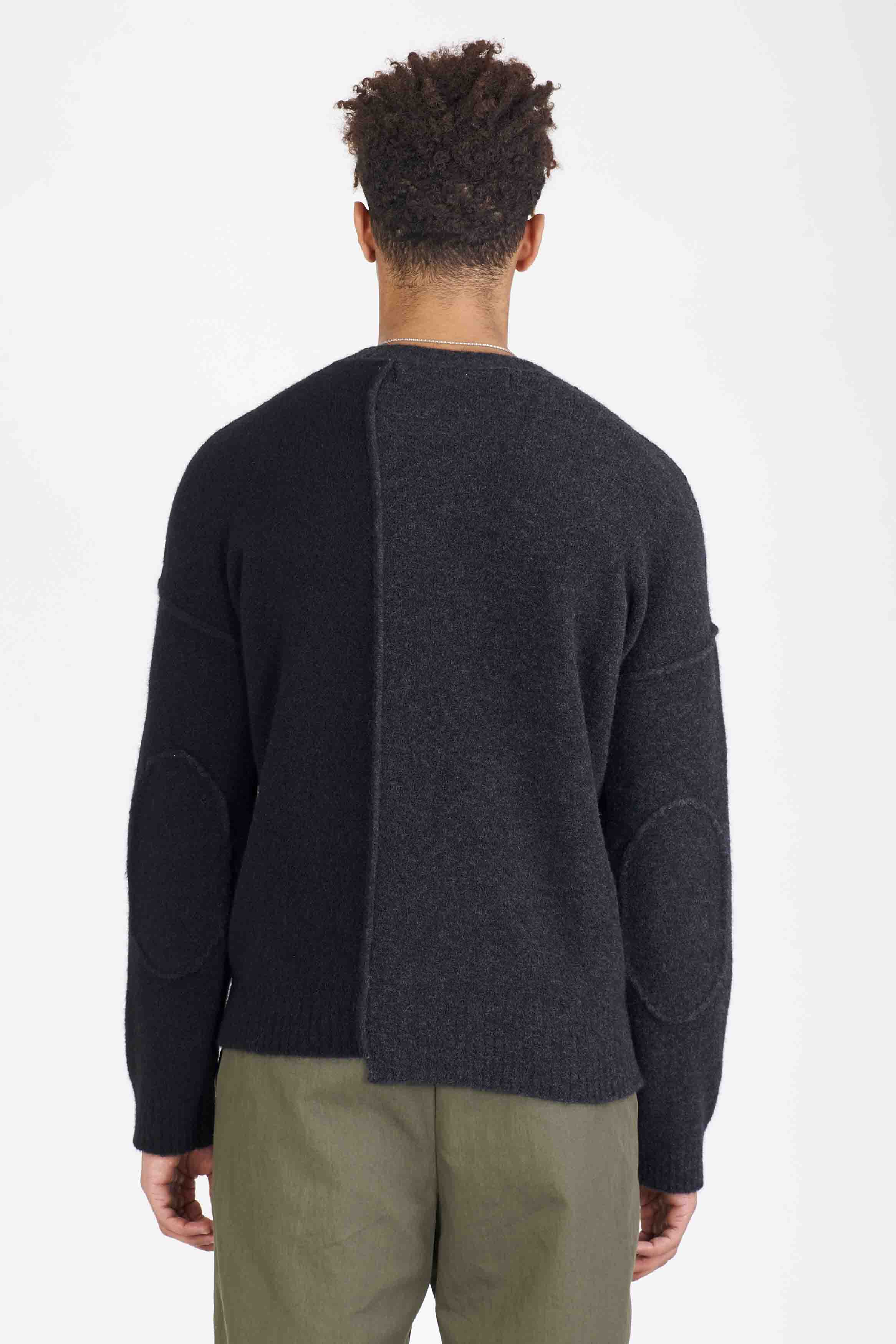 Yak sweater from Isabel Benenato. Long sleeves. Round neck. Regular fit. Soft and light Yak wool knit. Patchwork. Signature Contrast detailing throughout. Slit at side.
