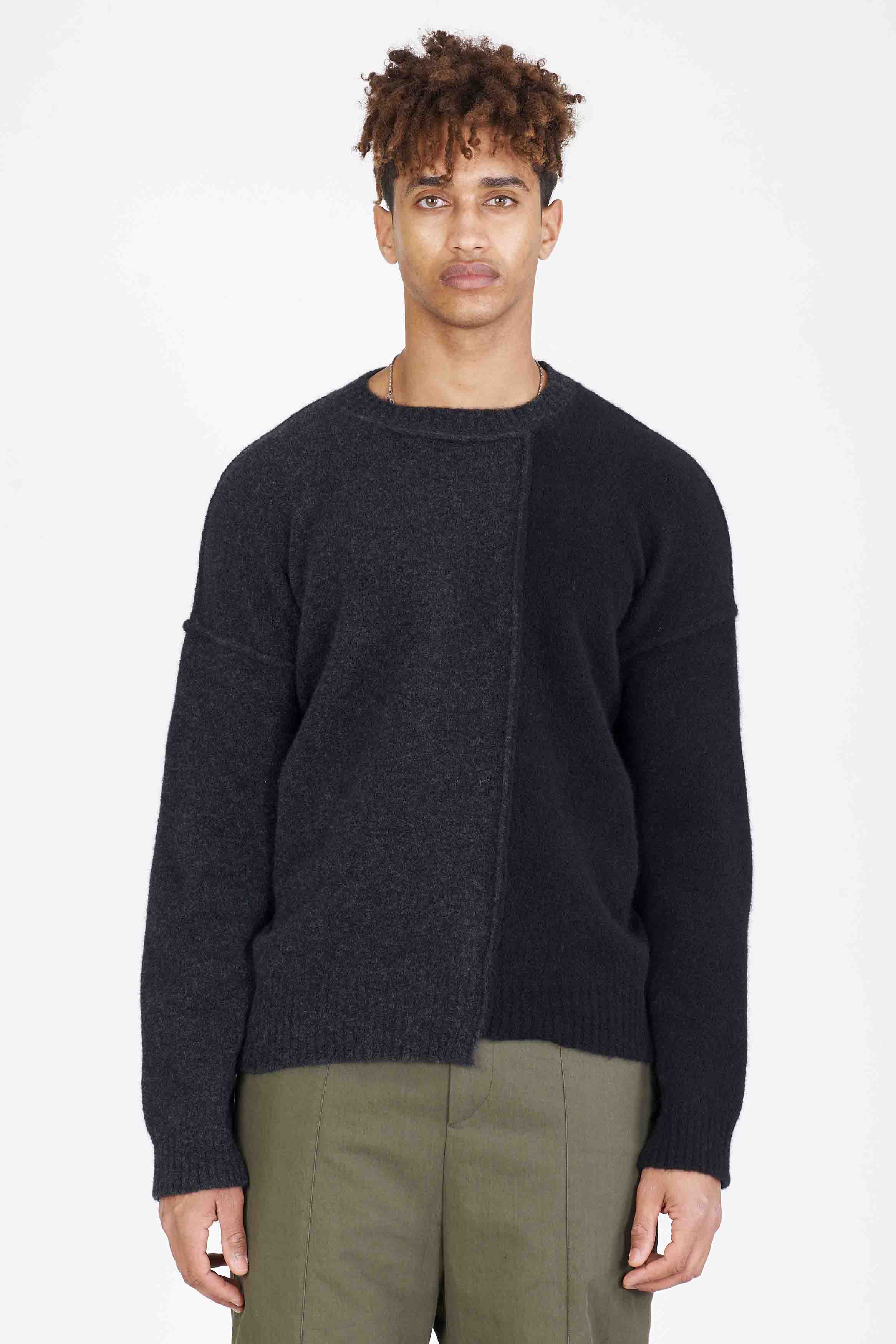Isabel Benenato is committed to sustainability and makes every effort to minimise its environmental footprint. All of the collection are manufactured in Italy with the intention to save and support her local community. Her design is based on an imperfect perfection that encompasses the human being itself as seen with the Yak Crewneck Sweater Graphite.