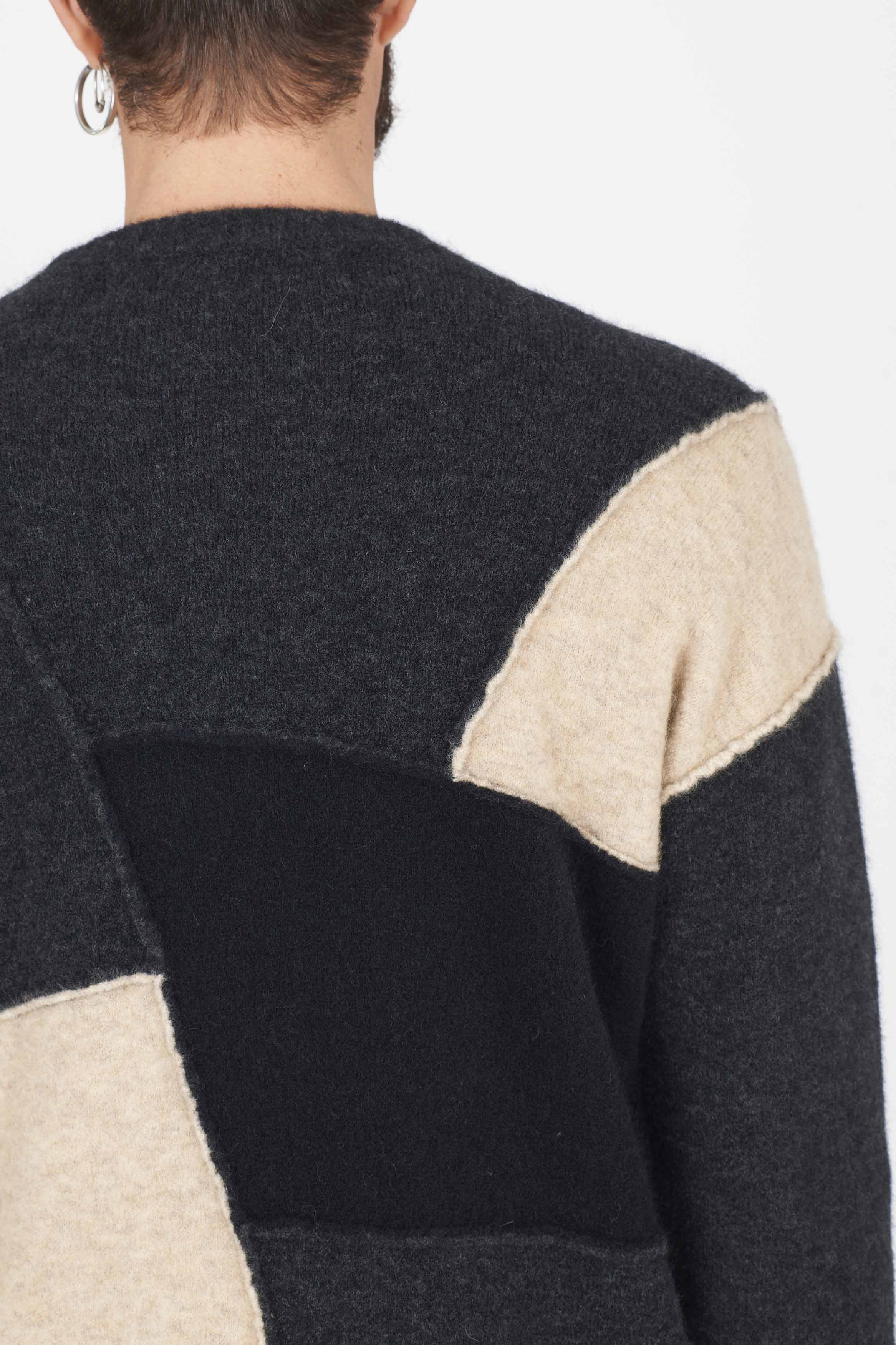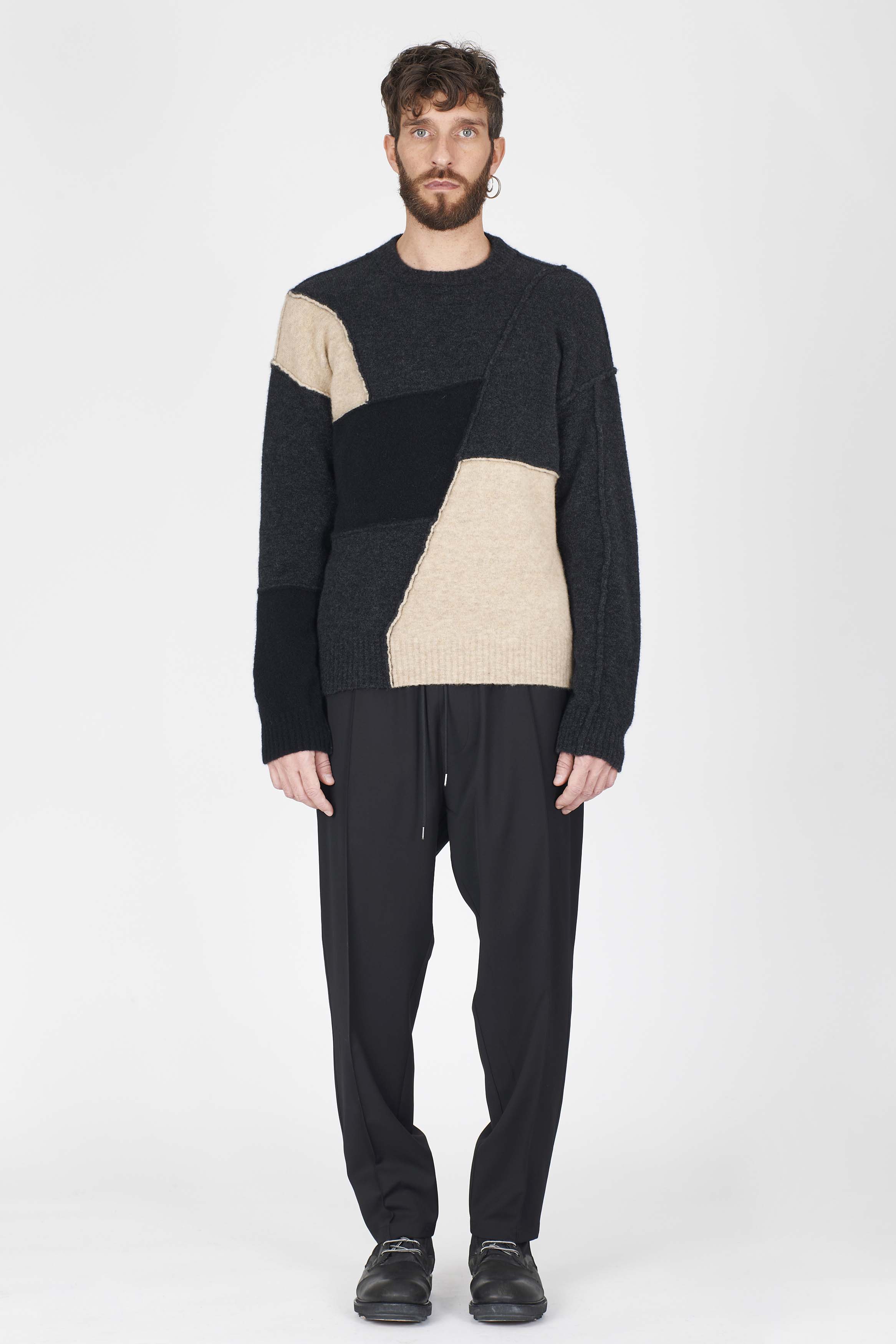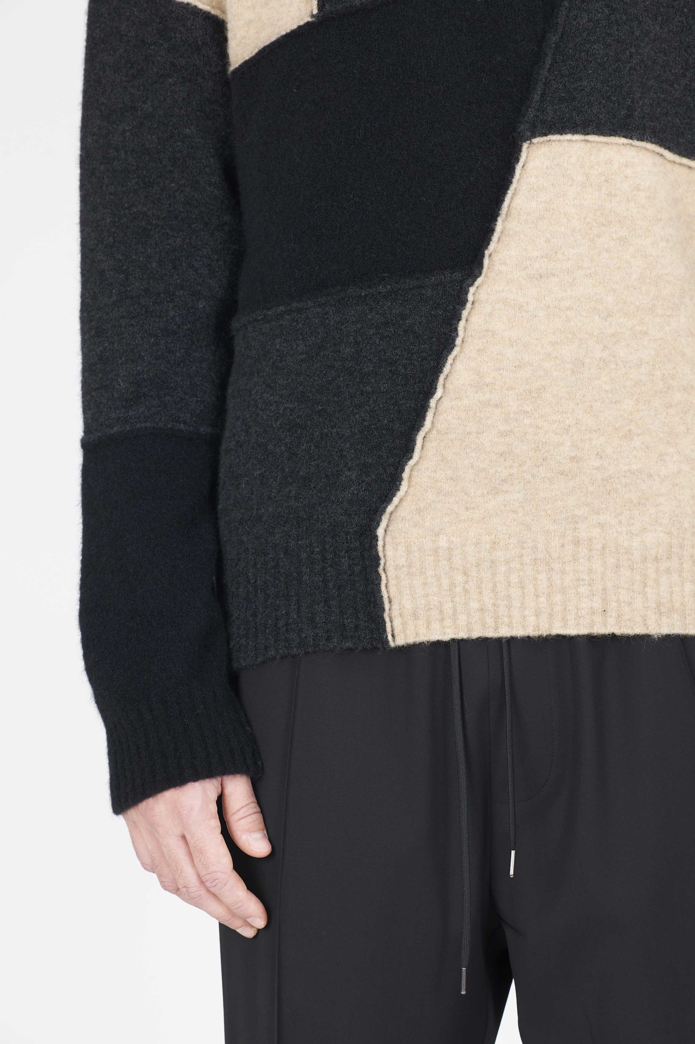 Isabel Benenato Yak Patchwork Crew Neck Knit Mix Colour. Crew neck. Patchwork throughout. Long sleeves. Regular fit.Colour: Black/Grey/Taupe. Composition: Yak