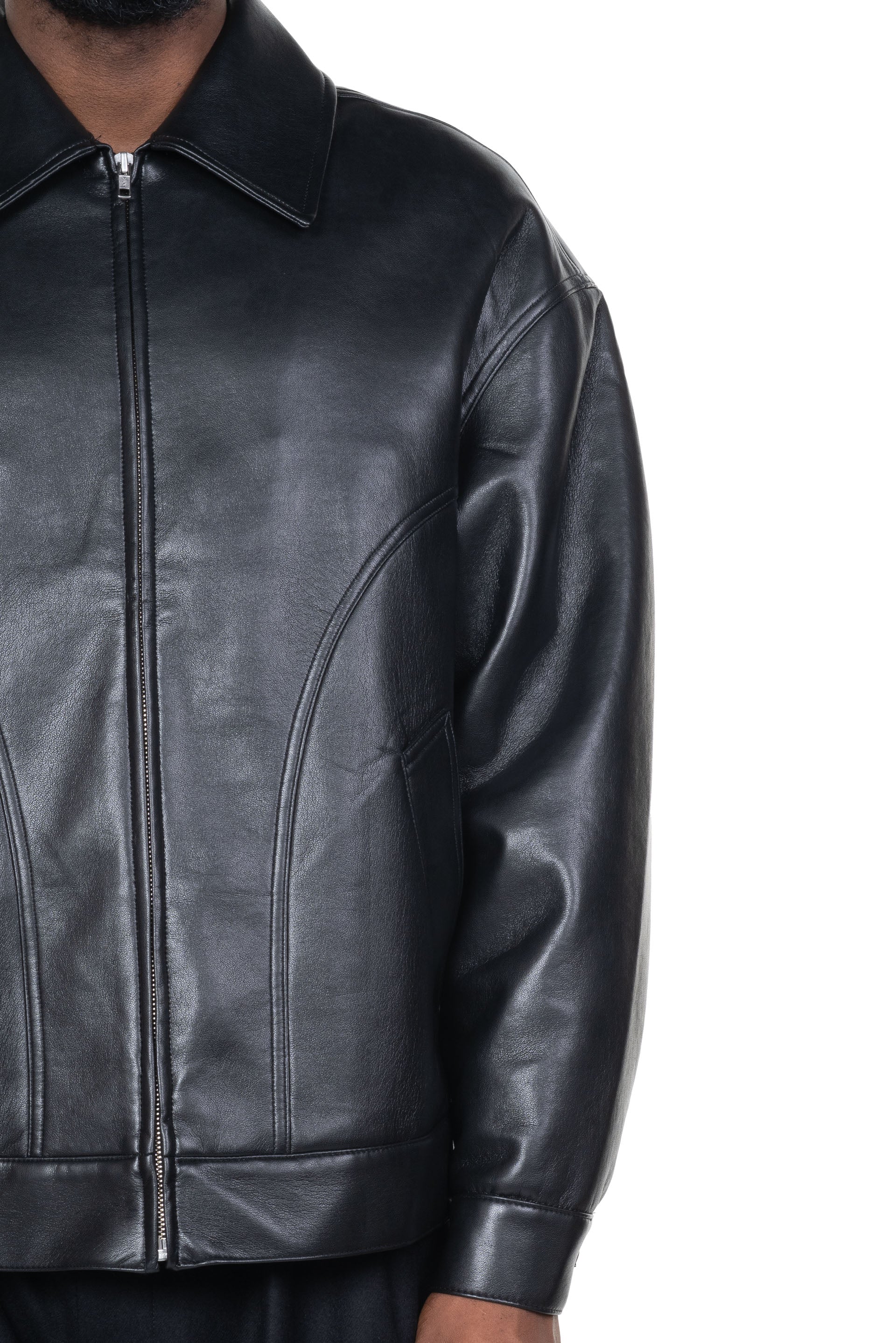Lownn Zip Jacket Regenerated Leather Black. Long sleeves. Zip closure at front. Two side pockets. Soft lamb leather touch.