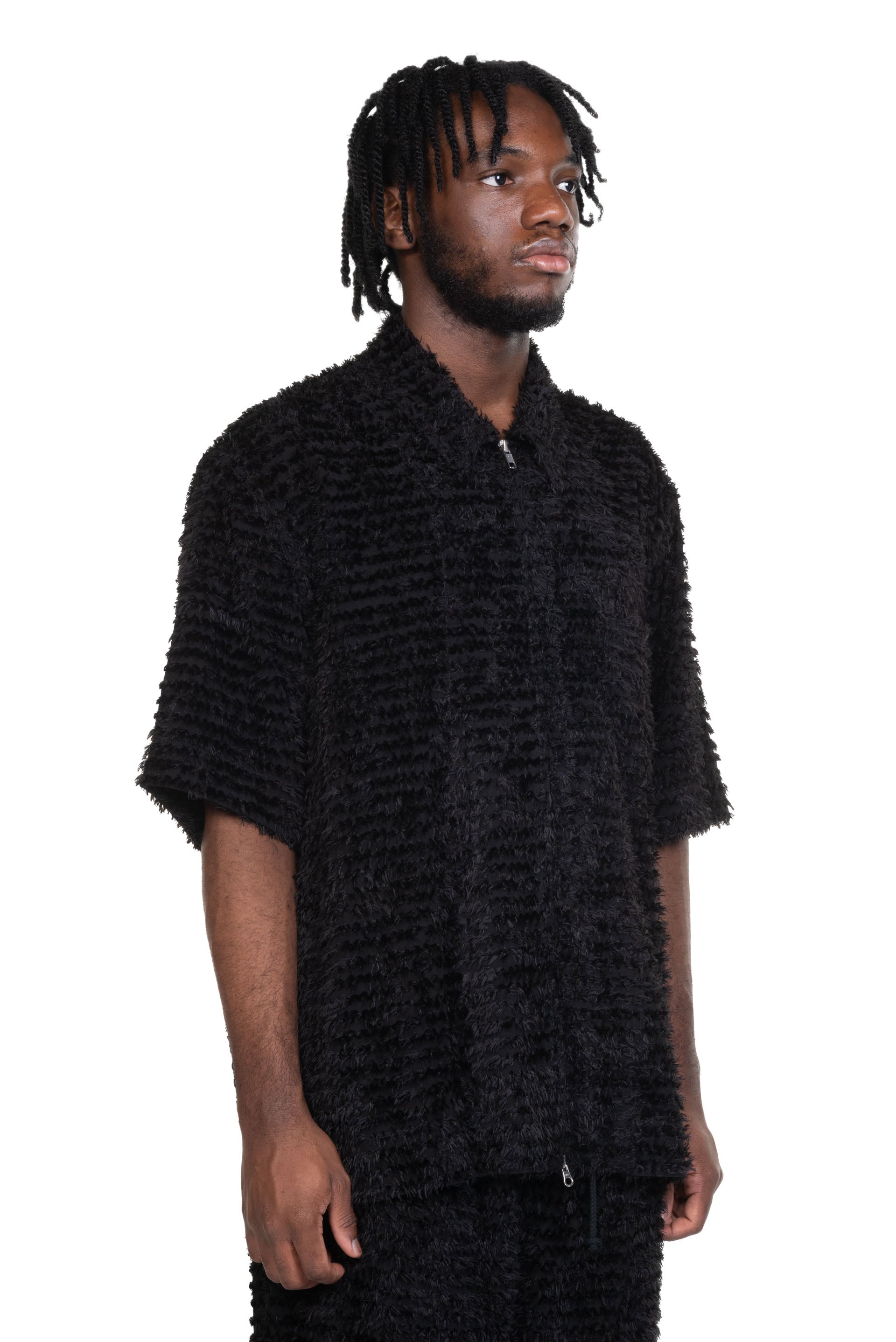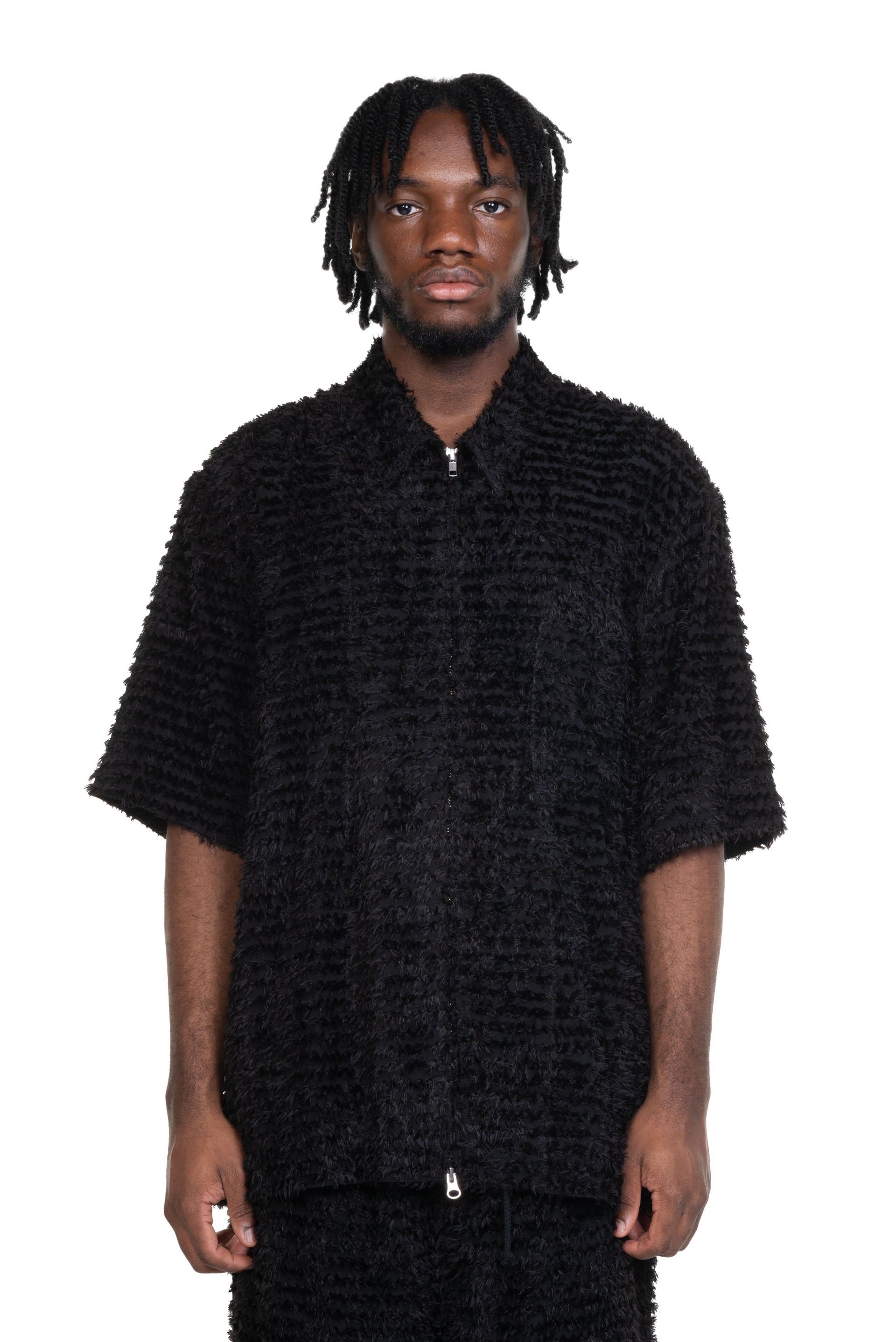 Song for the Mute short sleeves shirt. Front zip closure. Double zip. Regular collar. Pocket at chest. Soft hairy fabric. Lightweight and comfortable. Boxy fit.