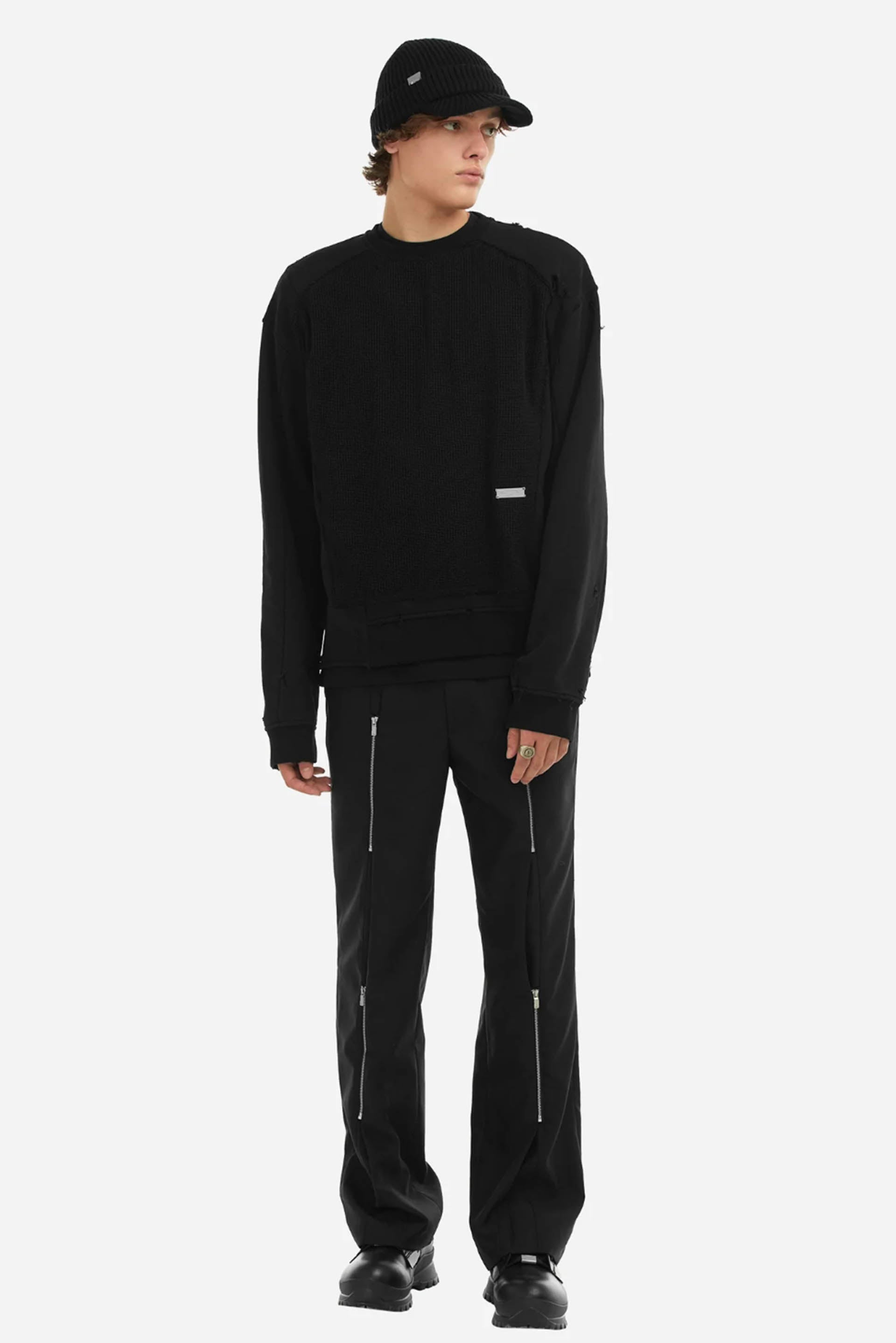 C2H4 concept ranges from hypothetical space scientists producing sport and streetwear-inspired designs creating an intergalactic underground culture. Using her studio as a laboratory, Chen’s meticulously elevates wardrobe cornerstones as seen with the Zipper Strap Straight Pants.